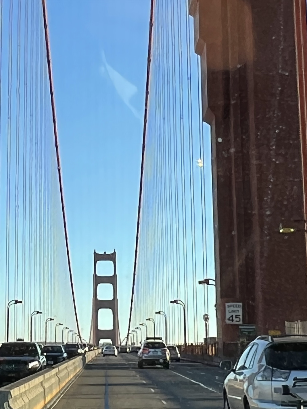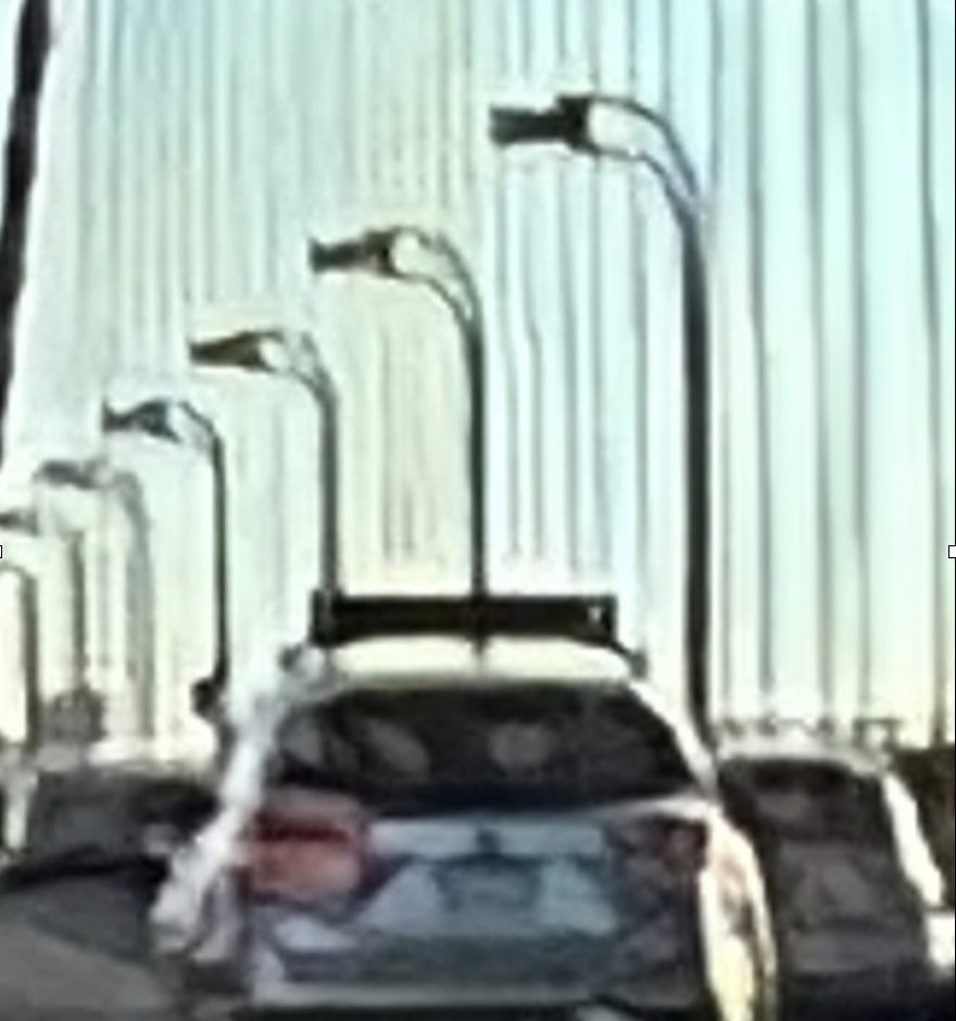 Apple is doing some funny things to avoid pixelation. In the image above, it ‘fills in’ details in the Speed Limit sign’s text fairly well, keeping it legible. Other areas, however, are modified in seemingly bizarre ways, even making the suspension cables of the bridge disappear around lampposts for inexplicable reasons: