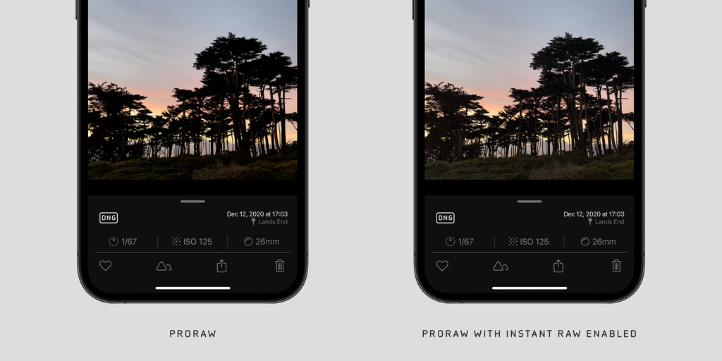 As for other iOS editors, Apple has updated its RAW processing frameworks to support these new tags. For the most part, it “just works,” so you’ll find ProRAWs display properly inside Halide’s photo gallery. You can toggle tone mapping on and off with the Instant RAW button.