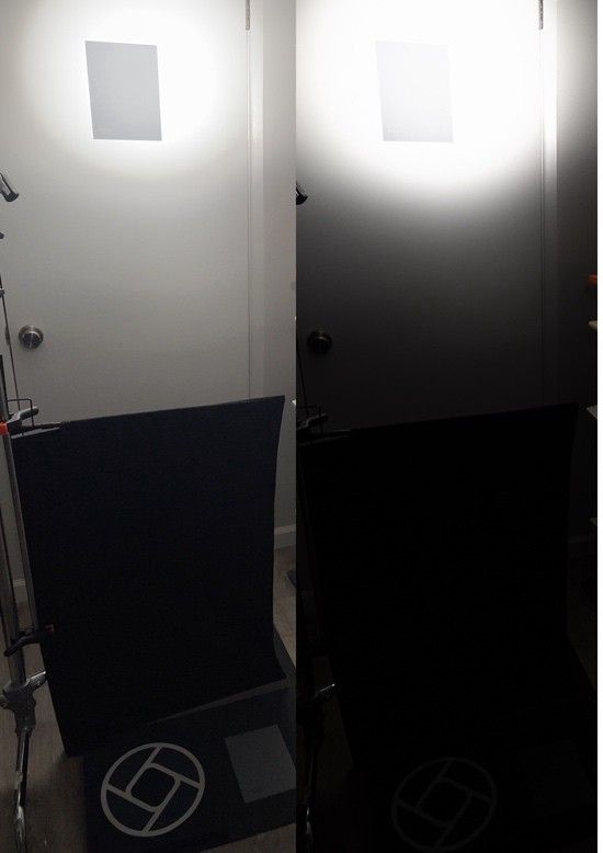 I spot metered the two grey cards and measured a difference of 8.3 stops. I then exposed the shot using the top grey card and took three photos: